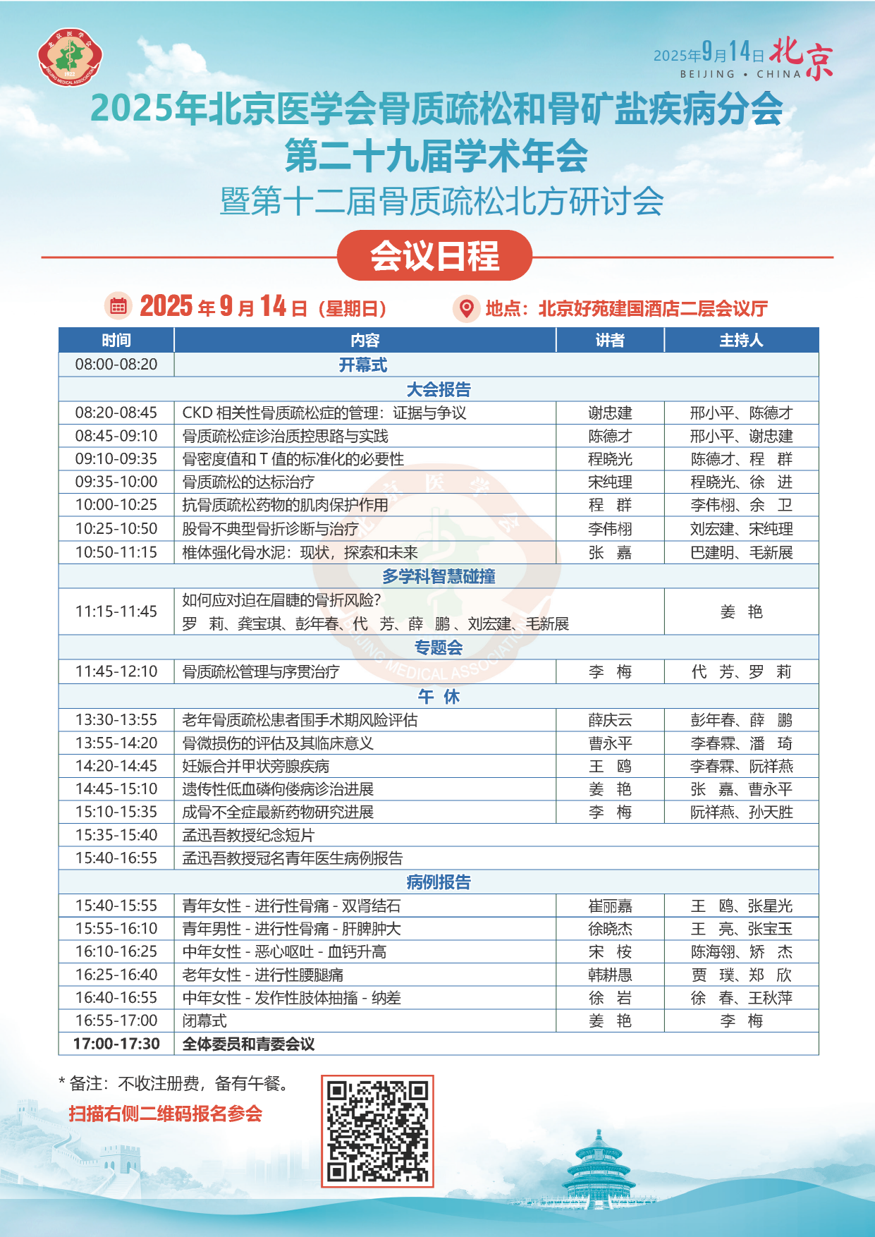 金秋九月、秋风初起,诚邀各位同仁相聚北京,共襄学术盛宴、共促骨骼健康!
