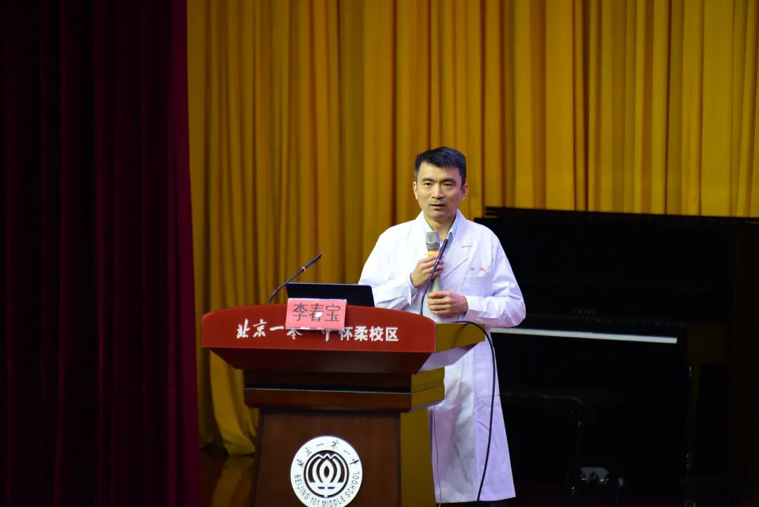 “大家能站起来吗?跟着我一起,左手举高,想象眼前有个篮球筐,去够它!”怀柔101中学的礼堂里,来自中国人民解放军总医院骨科医学部运动医学科李春宝主任,正带领数百名中学生做起传统养生动作“体内束腰”。同学们纷纷起立,伸手、侧身、踮脚,现场笑声与活力洋溢。“名医话健康”环节为师生带来了涵盖身体、心理与应急能力的“立体健康素养课”。